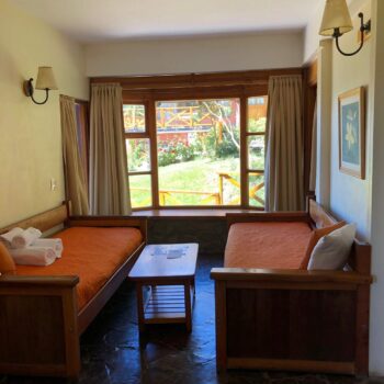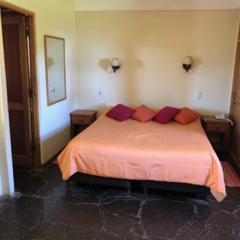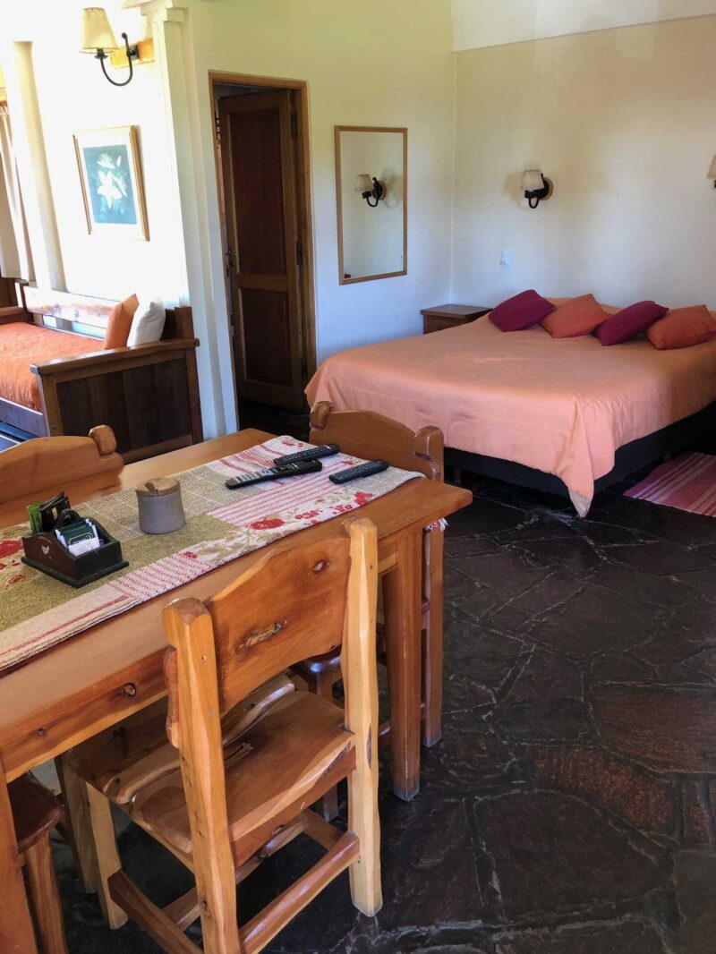 Cama matrimonial y 2 sofá camas integrados en el comedor.